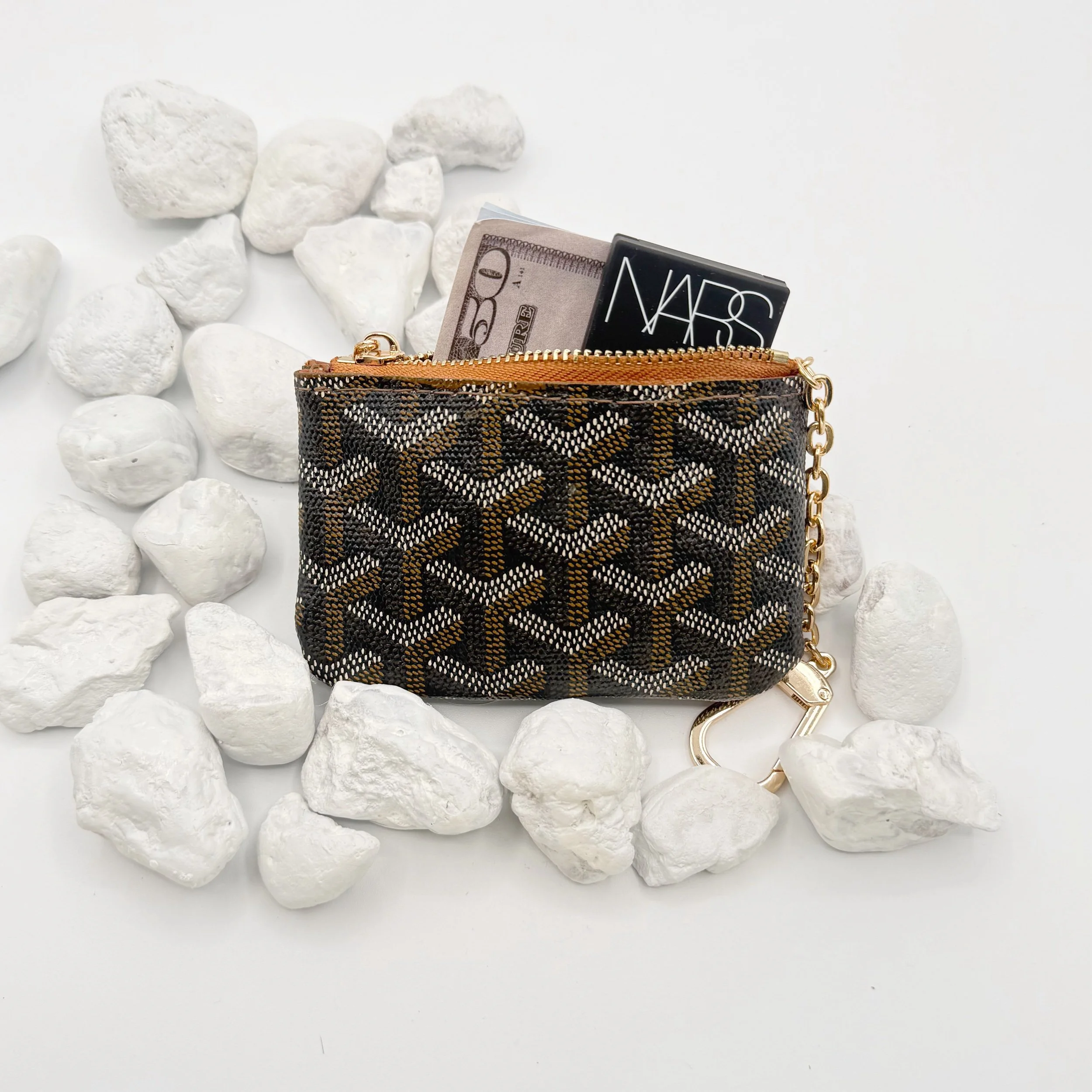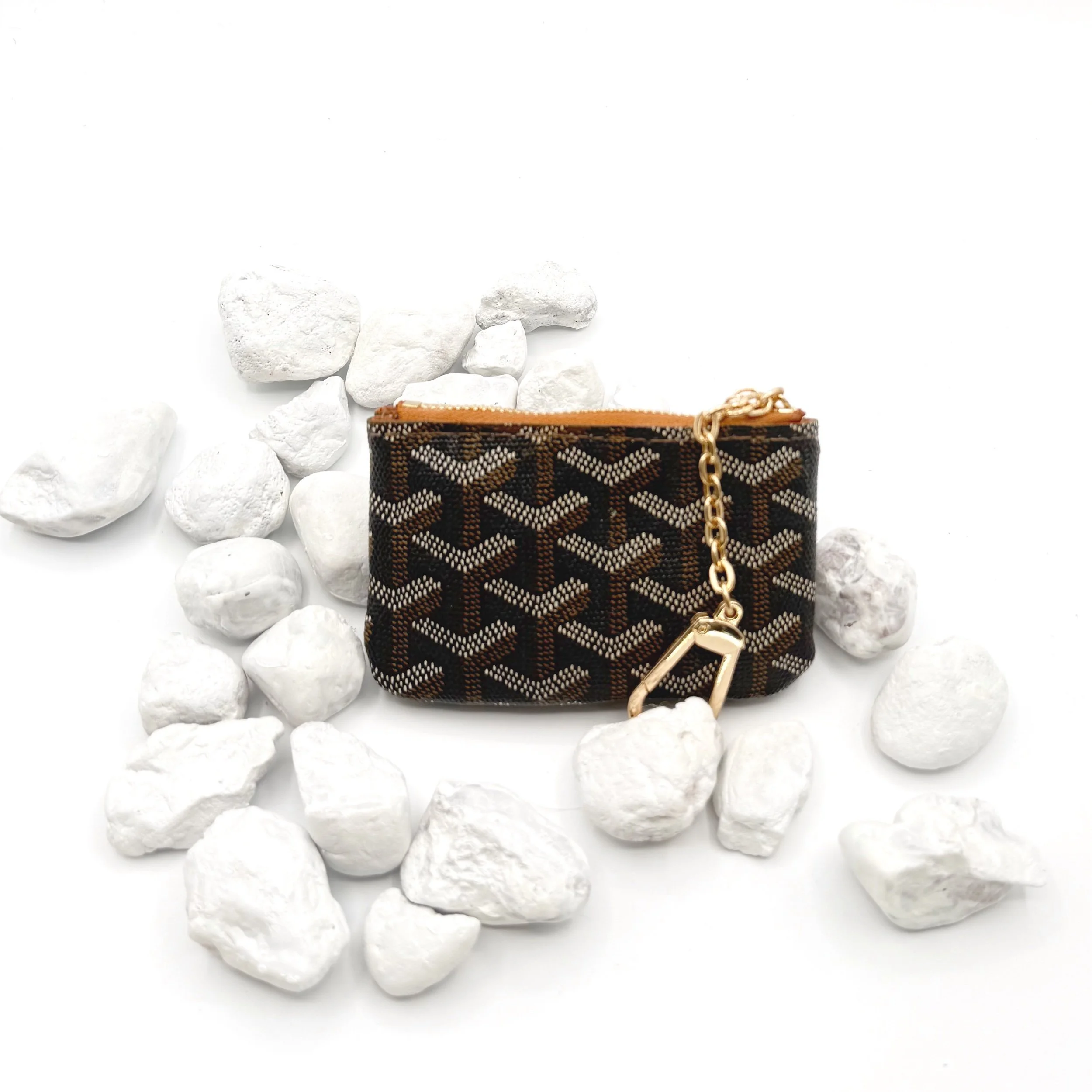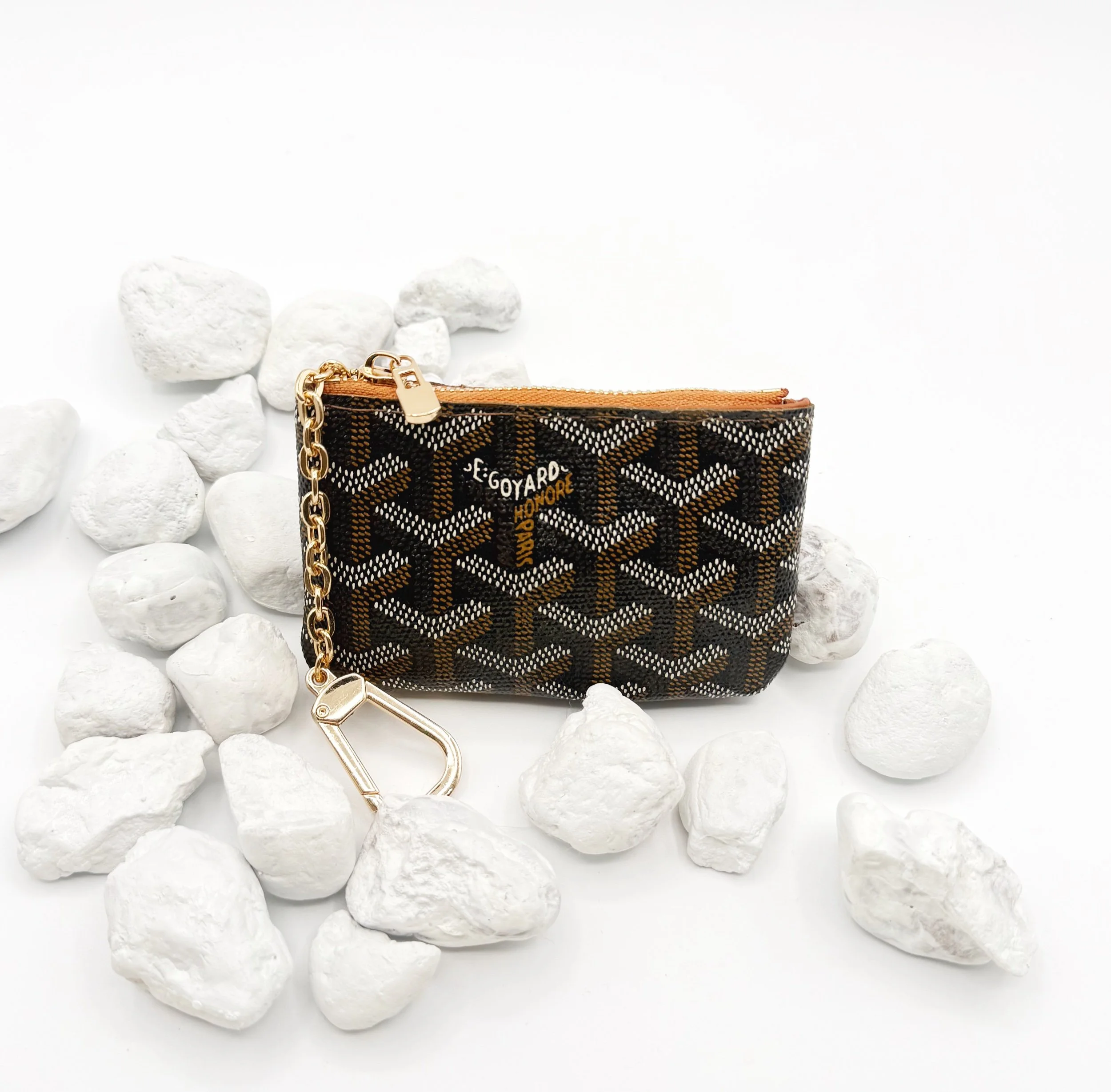 Elevate your everyday essentials with our exquisite handmade key pouch, crafted from harvested Goyard canvas. This unique accessory features a luxurious real leather interior, ensuring both durability and elegance.