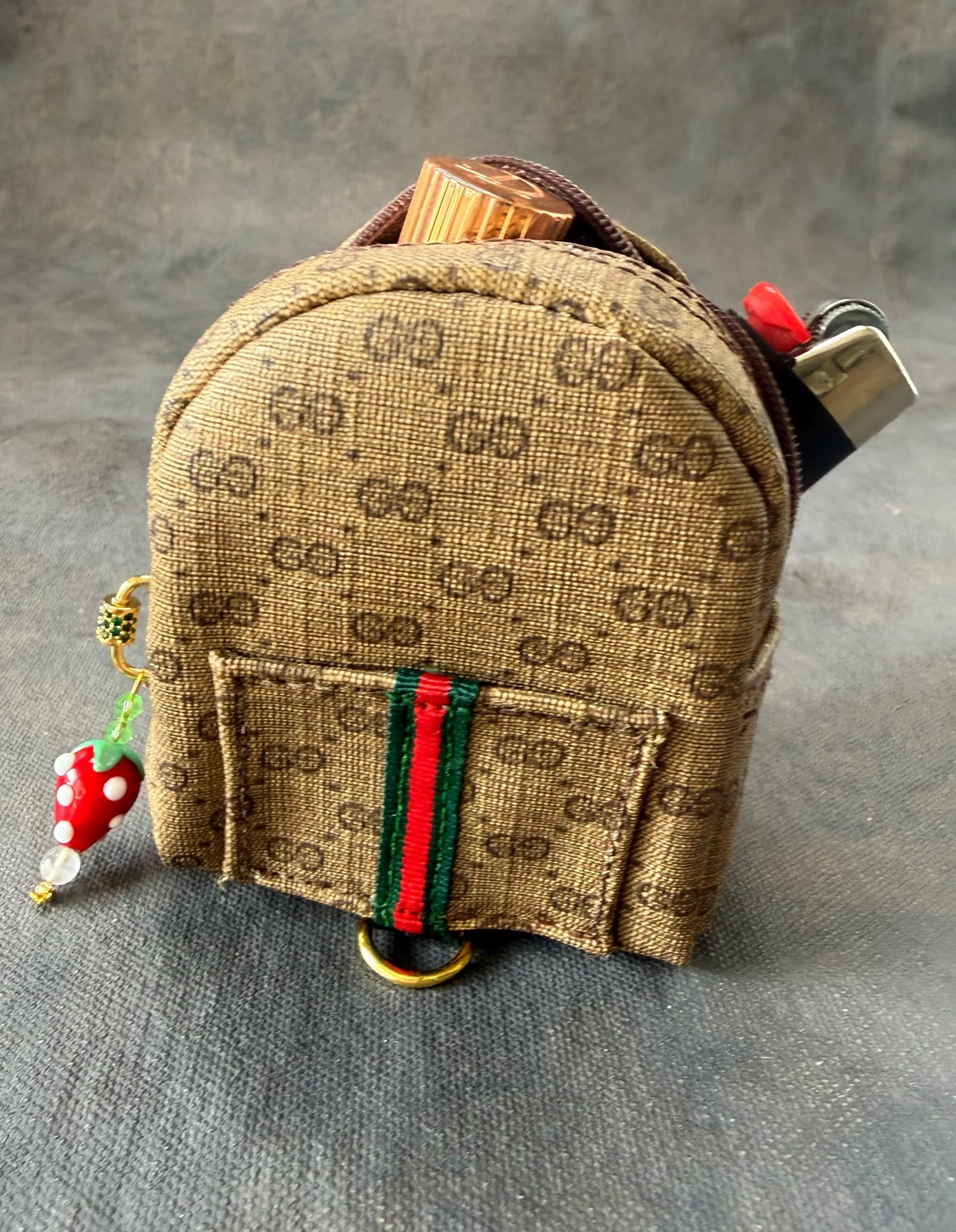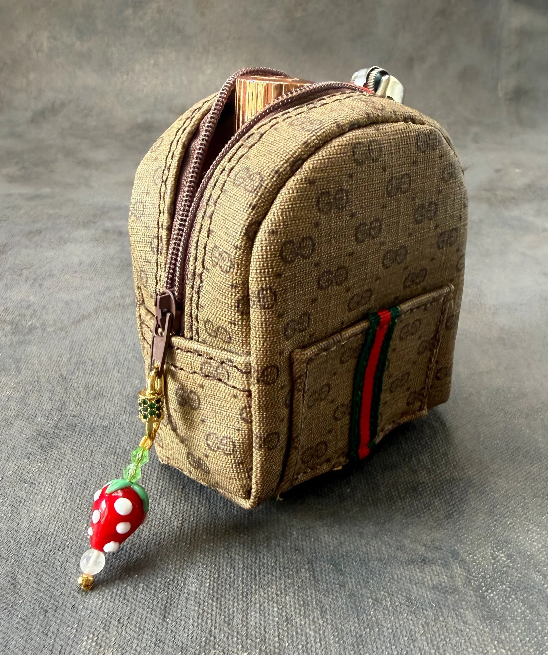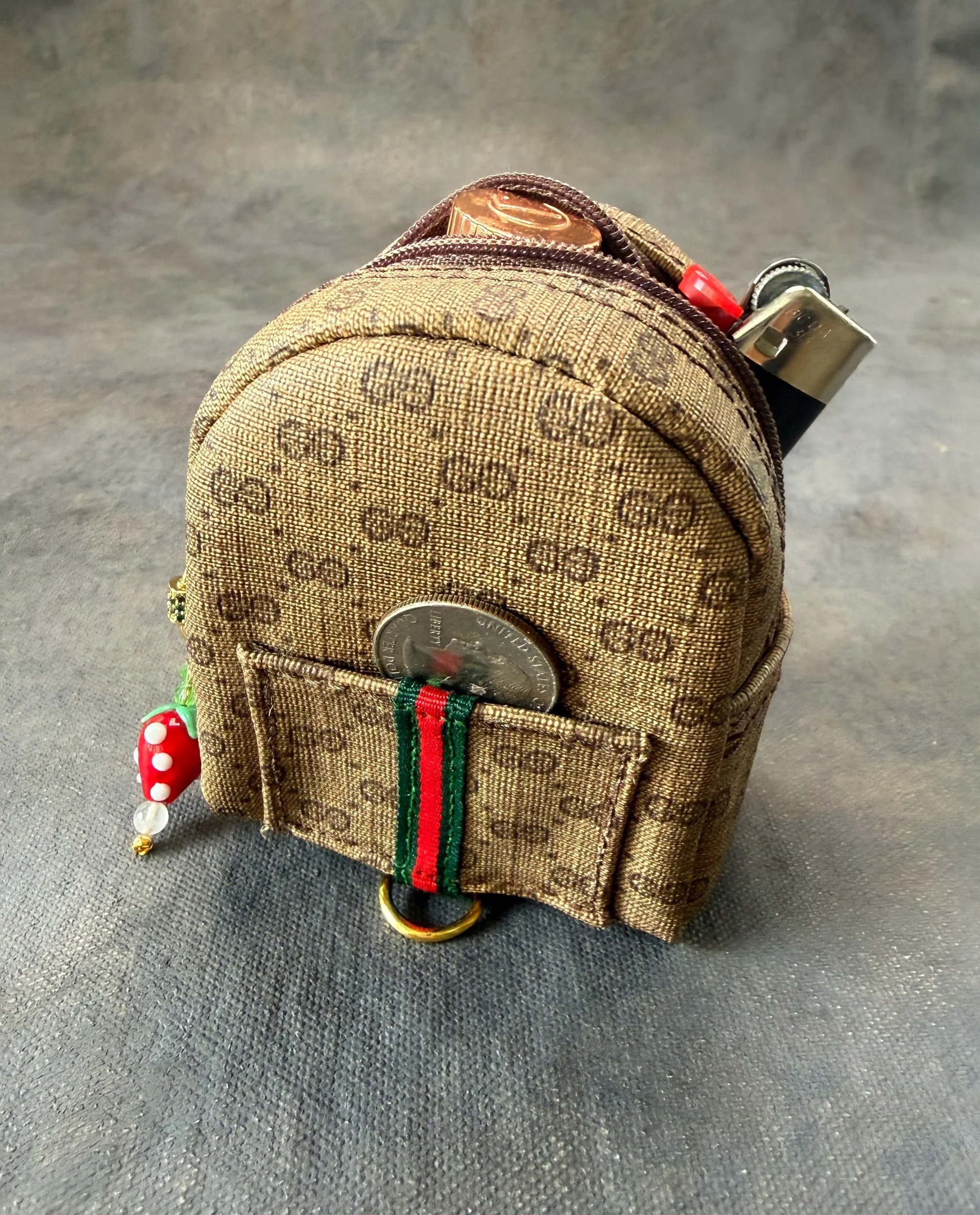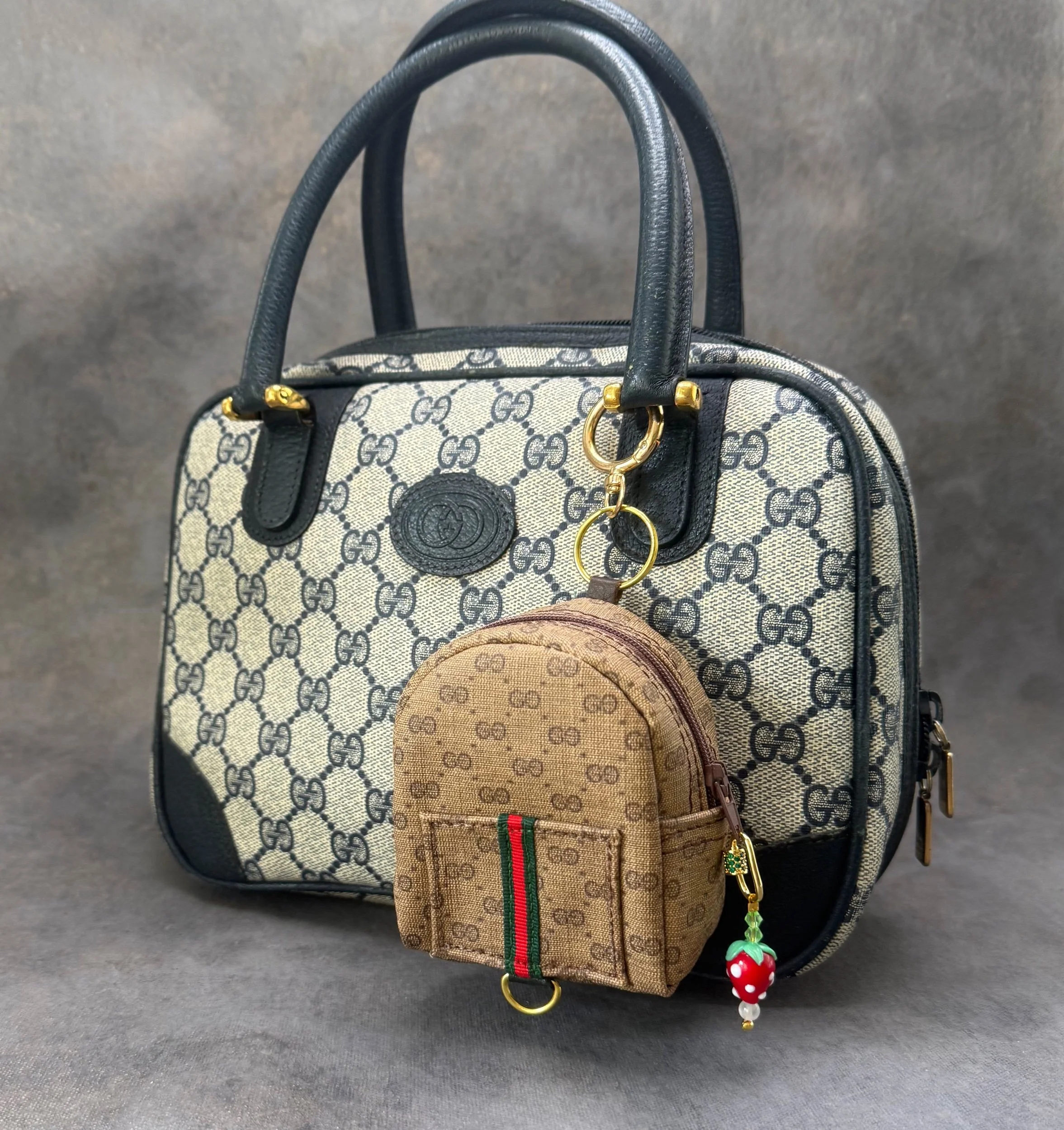 Made from authentic micro Gucci canvas, this mini makes a great keychain or bag charm. She is 4” tall and 3” wide and 1 3/4” front to back. Working front pocket. Accent bag chain and key ring. She makes a great holiday gift as well.