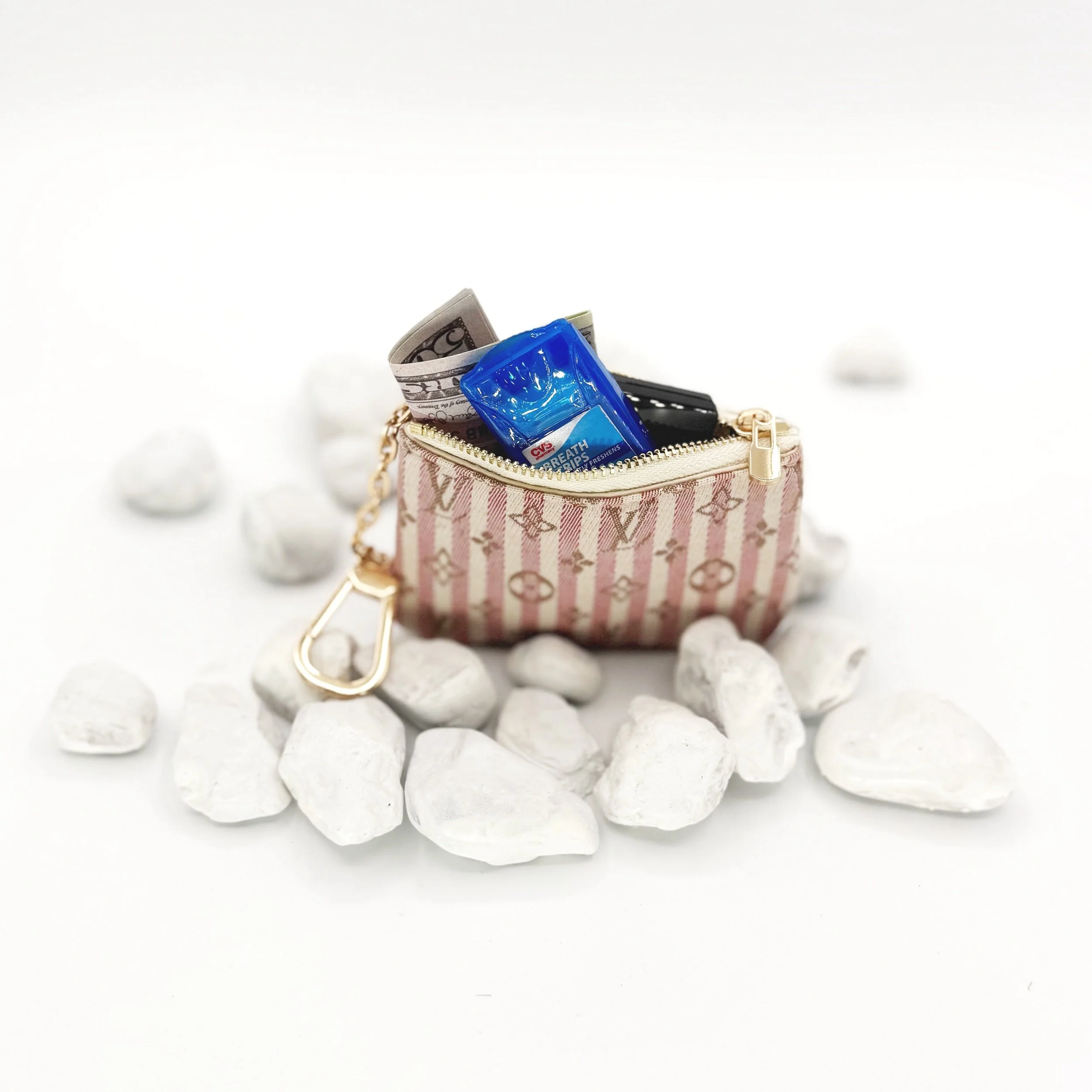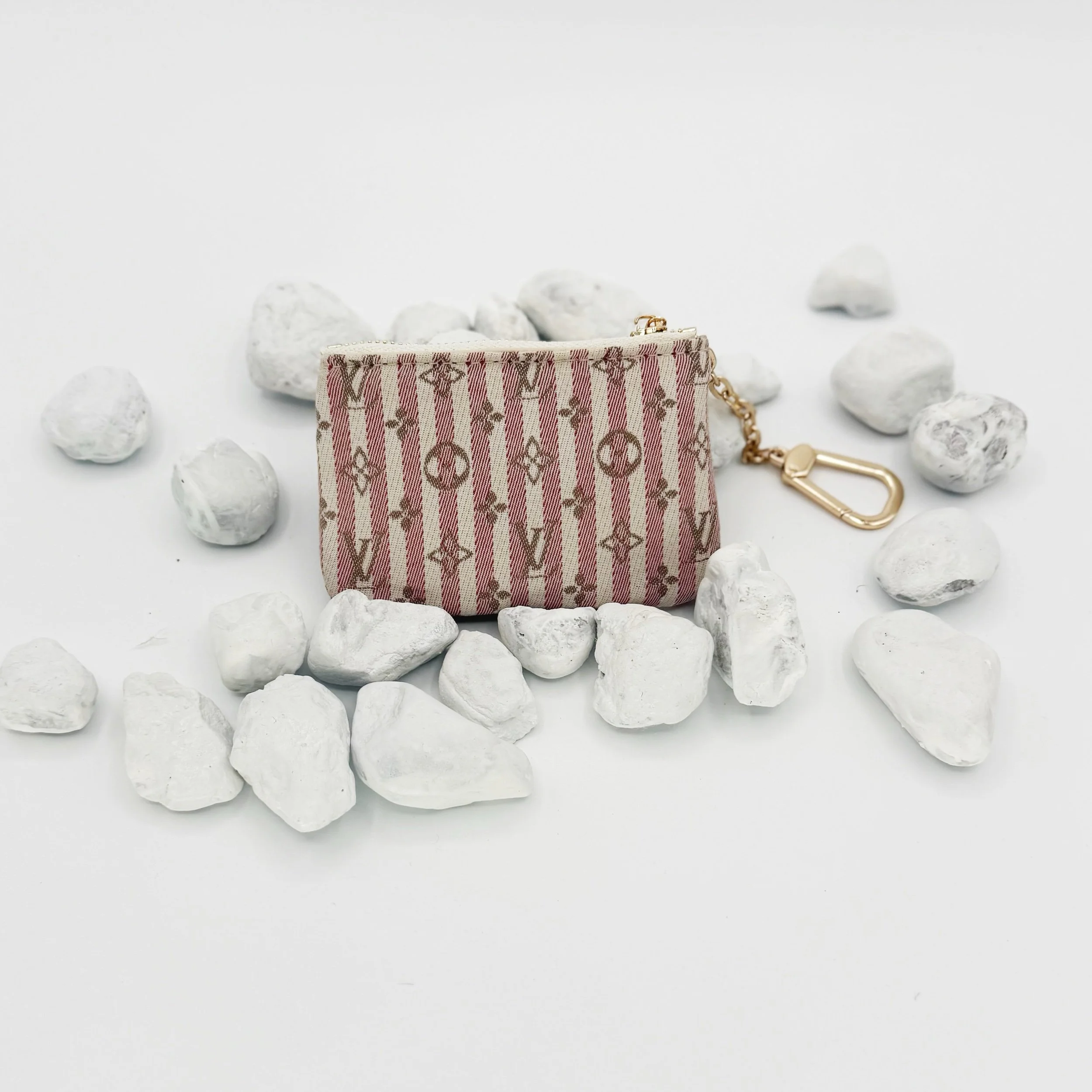 Elevate your everyday essentials with our exquisite handmade key pouch, crafted from harvested Louis Vuitton mini Lin canvas. This unique accessory features a luxurious real leather interior, ensuring both durability and elegance.